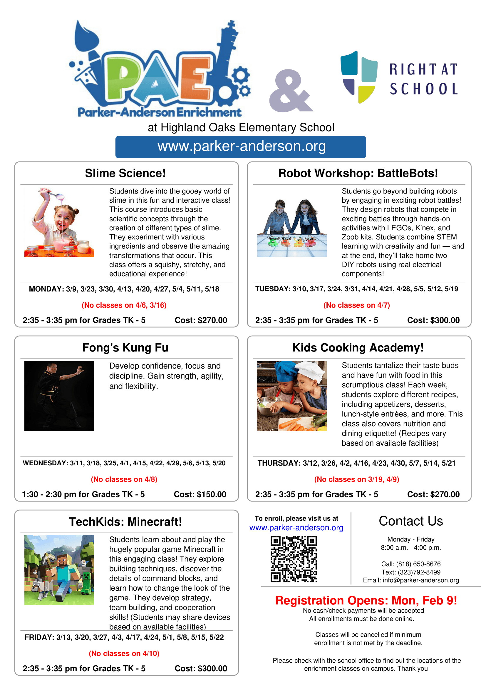Visit our website at www.parker-anderson.org to register for Spring 26 clubs.